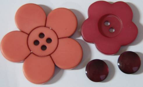 | 4 BOUTONS ROUGE (24MM) ET VIOLET (16MM) - BERGERE DE FRANCE | 3,21 € 2,57€ | 123.911 |  Stock : 1